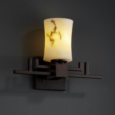 FAL-8701-20-MBLK Metal Finish: Matte Black, Shade Option: Round Flared Shown in Dark Bronze with Hour Glass Shade Features: -One light wall sconce.-Family name: Aero.-Cylinder with Flat Rim.-Shade material: Faux alabaster resin.-Suitable for damp locations.-Mounting center dimensions (Uplight): 7.25''.-Mounting center dimensions (Downlight): 2.5''. Options: -Available in several metal finishes. Specifications: -Accomodates (1) 60 W torpedo B-13 incandescent bulb. Dimensions: -Overall dimensions: 9.75'' H x 14.25'' W x 14.25'' D. Collection: -LumenAria collection..../ LumenAria Aero 14" One Light Wall Sconce Metal Finish: Matte Black, Shade Option: Round Flared / Sconce Shades
